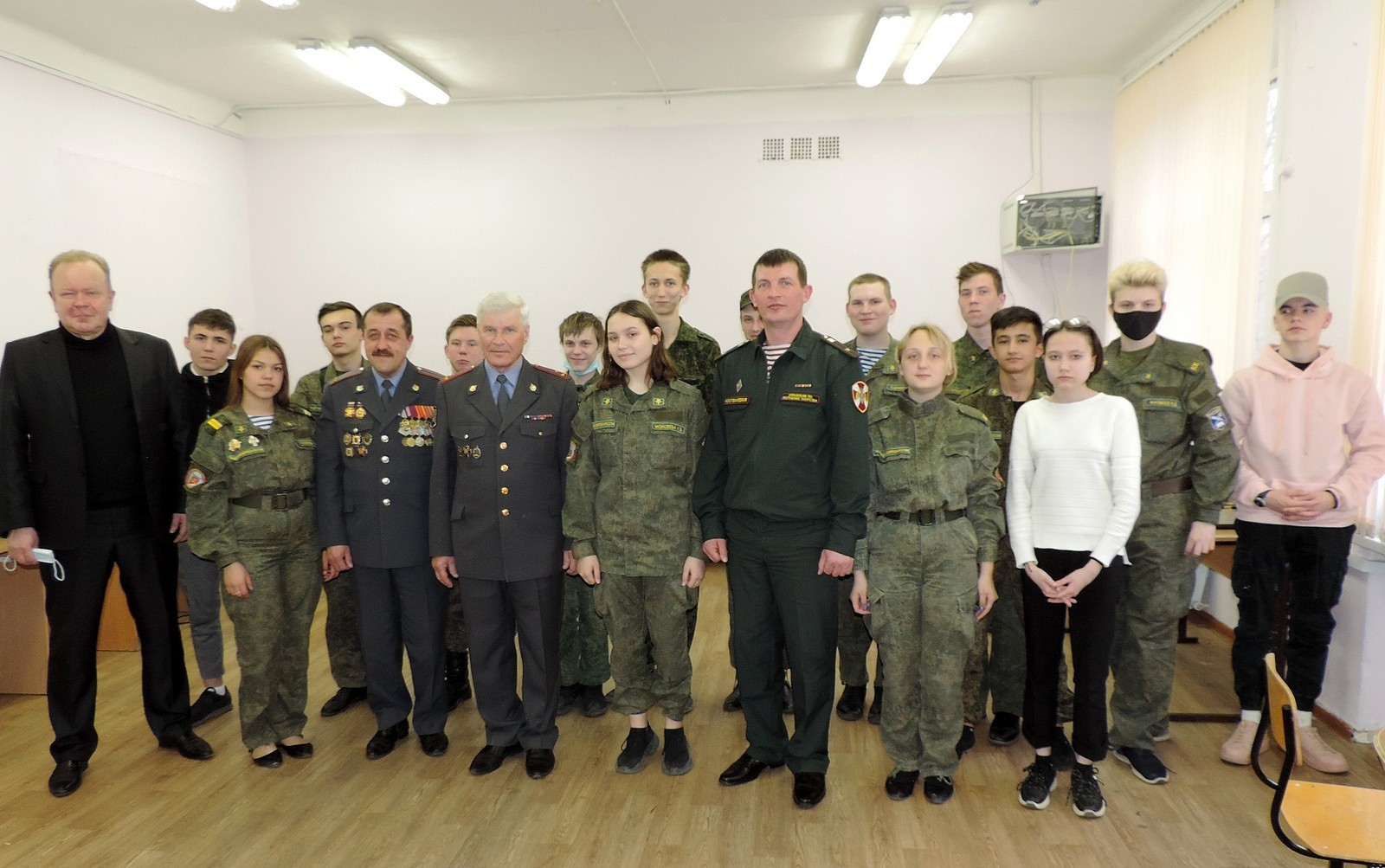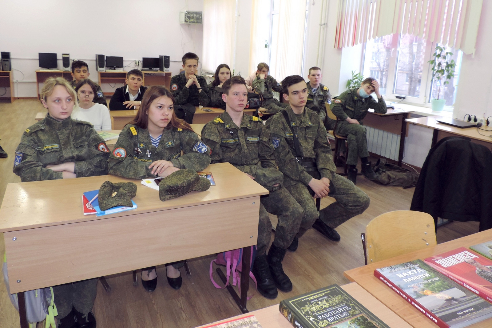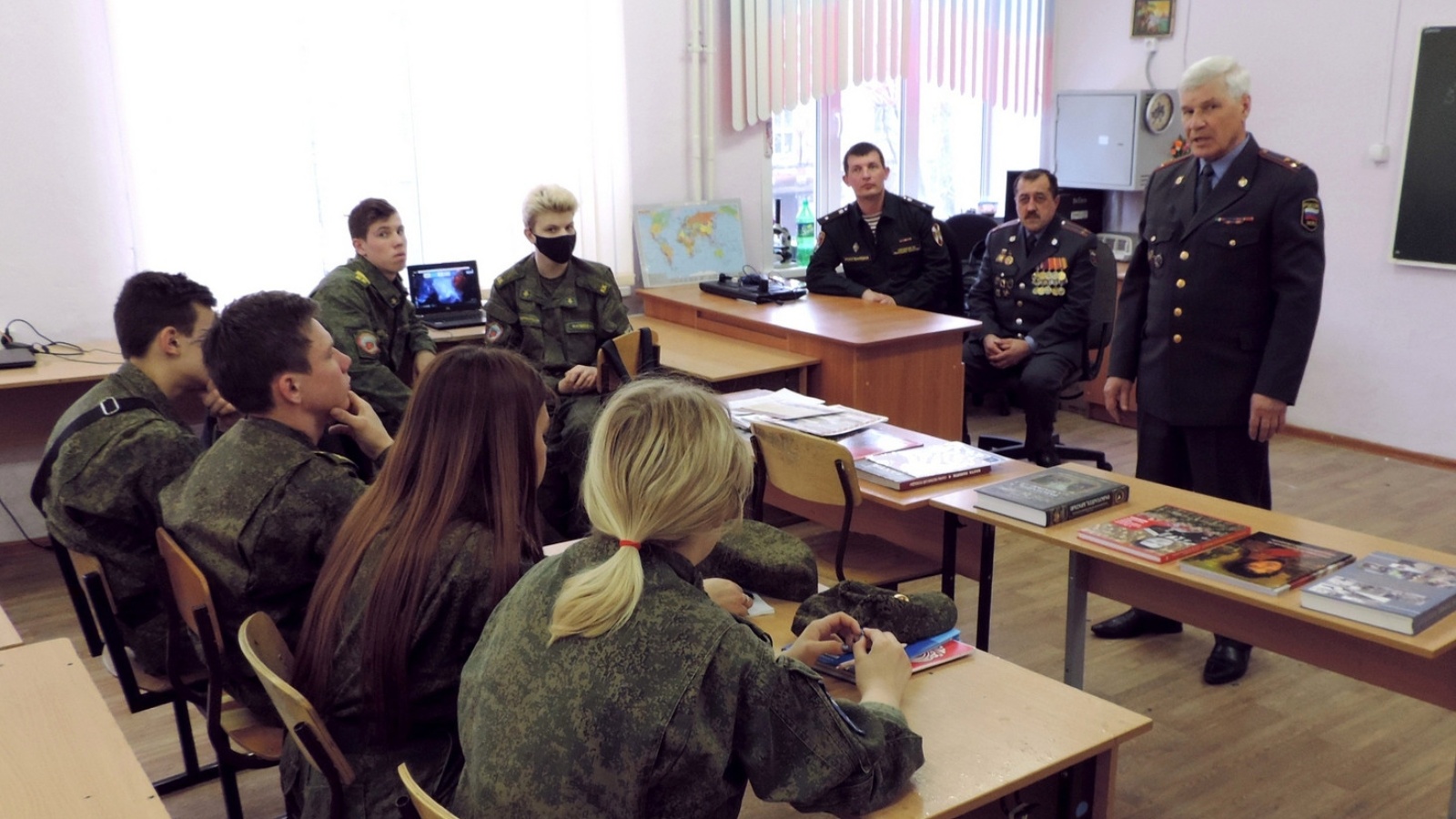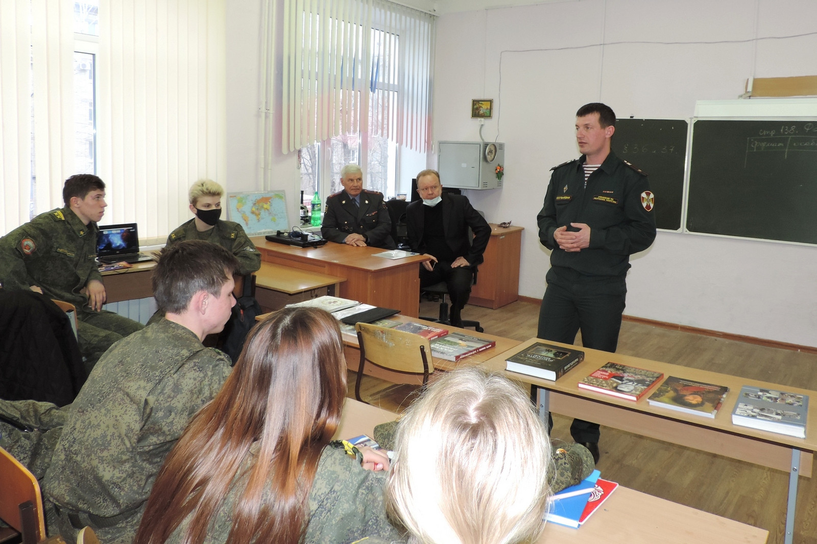 Так, росгвардейцы встретились с учащимися МБОУ «Военно-патриотический образовательный центр – школа №67 имени Анатолия Ивановича Чехова» Кировского района Казани. Перед кадетами 9 класса выступили помощник начальника отделения по работе с личным составом УФСВНГ РФ по РТ майор Александр Волков и председатель общественной ветеранской организации подразделений вневедомственной охраны Республики Татарстан полковник милиции в отставке Валерий Харитонов.