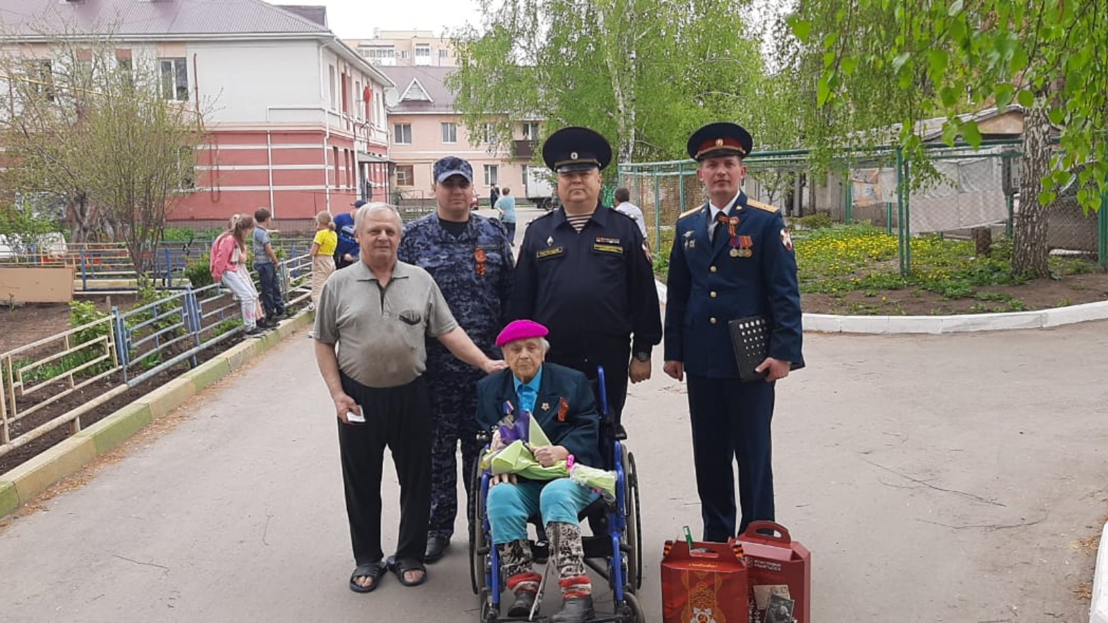Накануне Дня Победы военнослужащие и сотрудники Управления Росгвардии по Республике Татарстан посетили участника Великой Отечественной войны, фронтовика и ветерана ведомства ефрейтора в отставке Муралёву Веру Васильевну. Во дворе дома, где проживает Вера Васильевна, офицеры территориального Управления Росгвардии зачитали поздравление директора Федеральной службы войск национальной гвардии Российской Федерации генерала армии Виктора Золотова и рассказали всем присутствующим о фактах фронтовой биографии их героической соседки-фронтовика, поблагодарили её за совершенные подвиги, проявленную мужественность и отвагу. Участнице Великой Отечественной войны вручили подарки и медаль в честь юбилея войск правопорядка России.