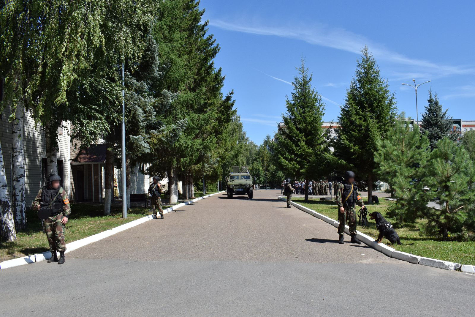 По замыслу учения, группа вооруженных бандитов захватила одноэтажное здание. Для обнаружения и блокирования незаконного вооруженного формирования в район его нахождения выдвинулись подразделения СОБР и ОМОН Росгвардии.