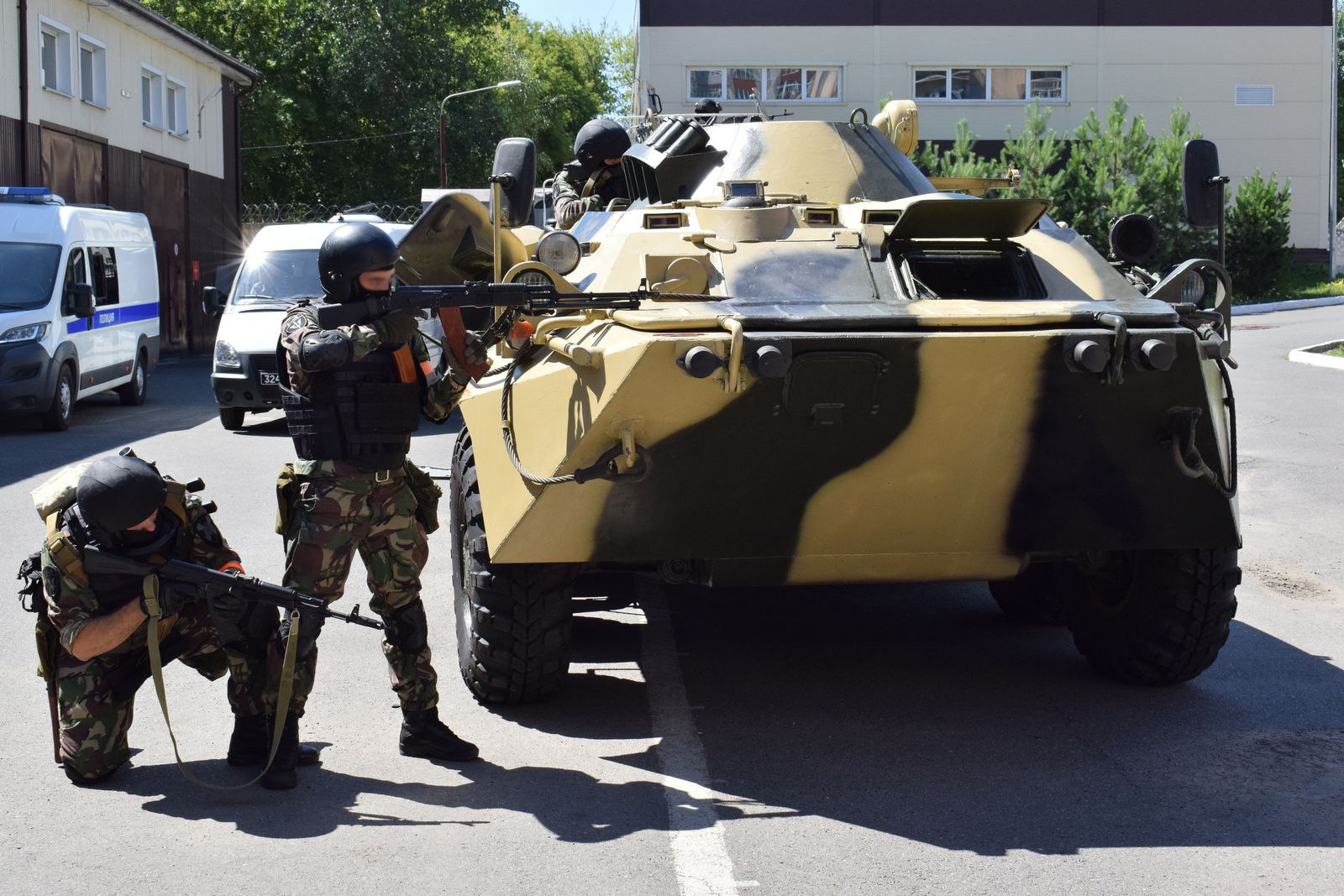 Так, по прибытии в район предполагаемого нахождения преступников офицеры СОБР заняли боевые позиции и провели поочередный осмотр зданий, в одном из которых были обнаружены вооруженные бандиты. В ответ на требование правоохранителей немедленно сдаться преступники открыли огонь. Под прикрытием бронетехники сотрудники спецподразделения взяли штурмом помещения. При этом один из росгвардейцев был условно ранен, после чего была проведена его эвакуация и оказание медицинской помощи.