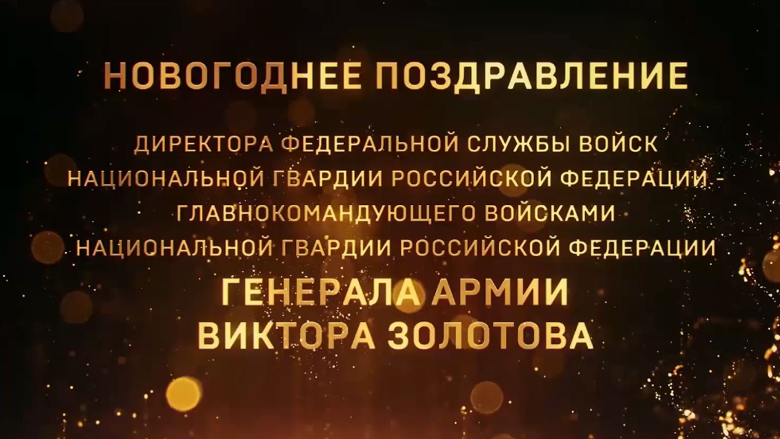 Директор Федеральной службы войск национальной гвардии Российской Федерации – главнокомандующий войсками национальной гвардии Российской Федерации генерал армии Виктор Золотов поздравил личный состав и ветеранов ведомства с наступающими праздниками и пожелал счастливого Нового года и Рождества.