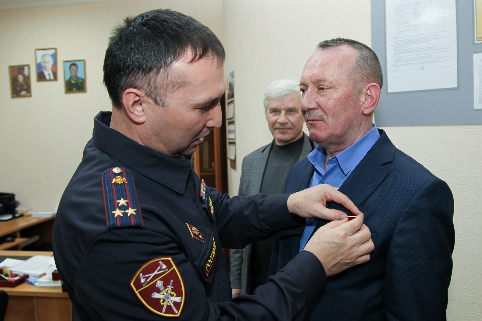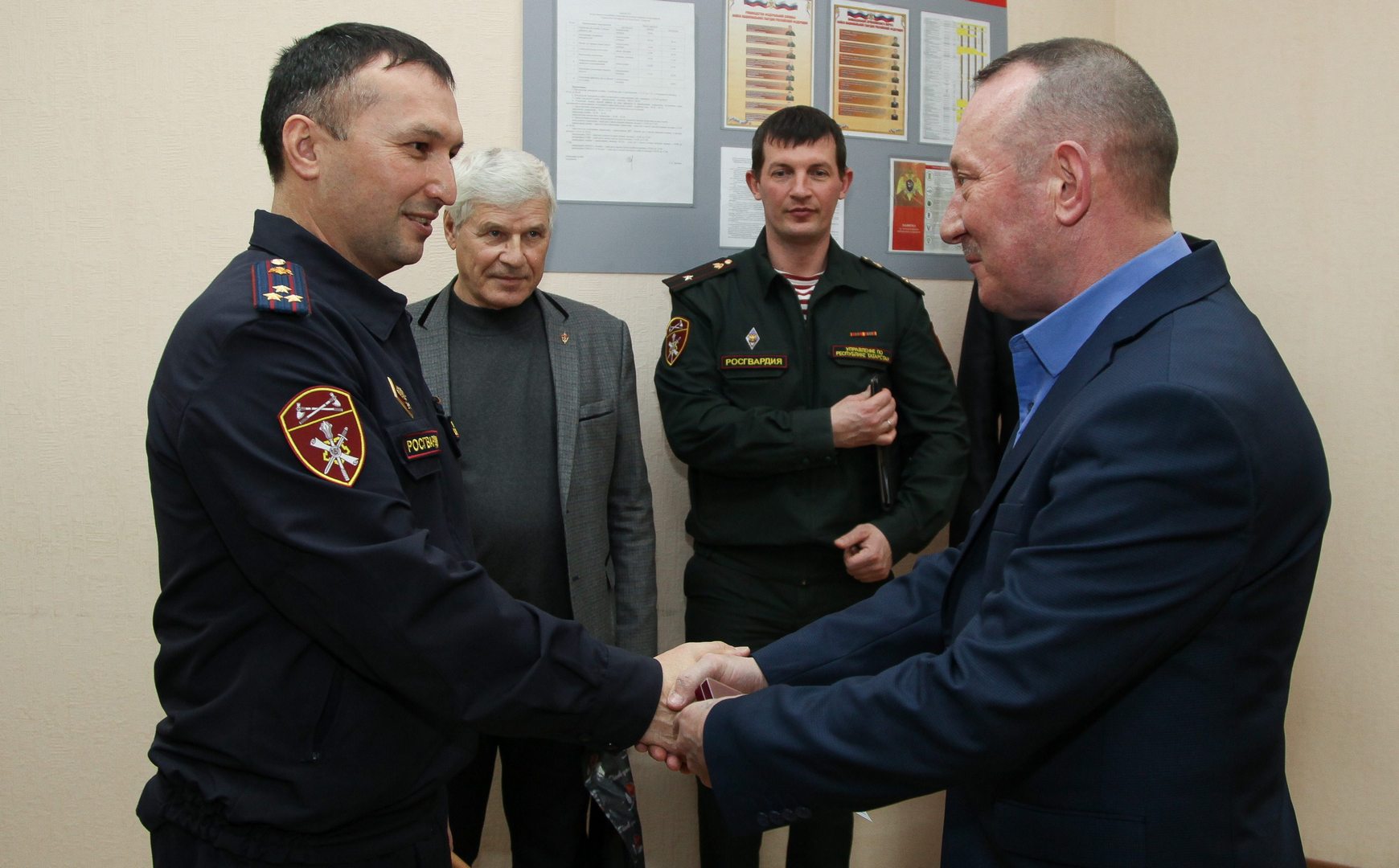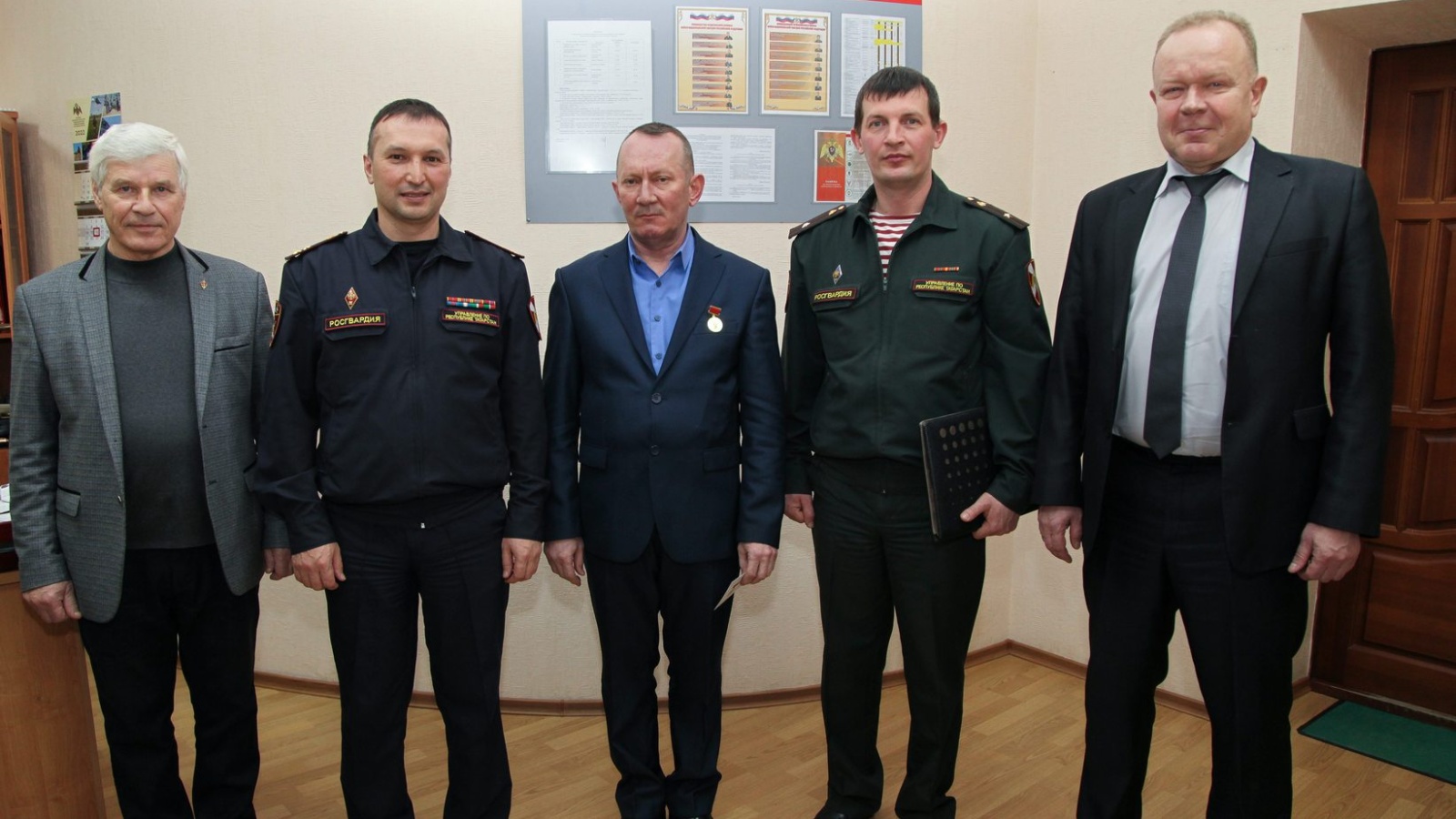 Почетную медаль ветерану боевых действий вручал заместитель начальника УФСВНГ РФ по РТ полковник Рафил Набиуллин. В церемонии также участвовали помощник начальника по работе с ветеранами территориального Управления майор полиции в отставке Игорь Пыжов и председатель ветеранской организации службы вневедомственной охраны Татарстана полковник милиции в отставке Валерий Харитонов.