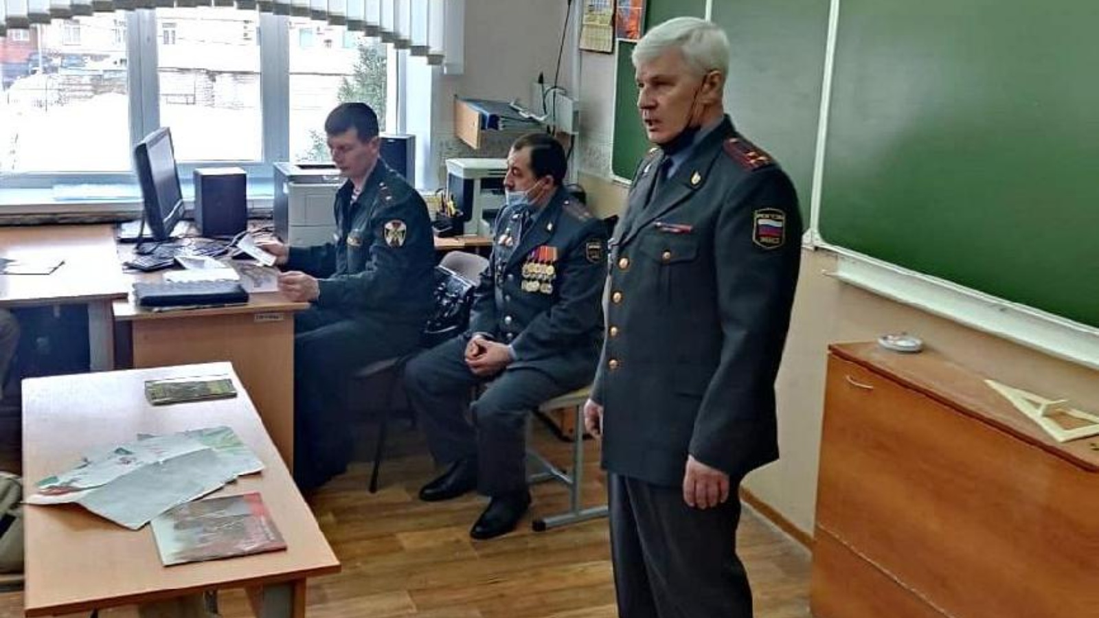 Перед ребятами выступили офицер территориального Управления Росгвардии майор Александр Волков и председатель ветеранской организации УВО по РТ полковник милиции в отставке Валерий Харитонов. Гости поведали школьникам об истории создания ведомства, напомнили о подвигах военнослужащих войск НКВД во время Великой Отечественной войны и в наши дни. Ребятам рассказали об особенностях службы и задачах, выполняемых сегодня Росгвардией, а также напомнили о таких понятиях, как долг, честь, мужество и патриотизм.