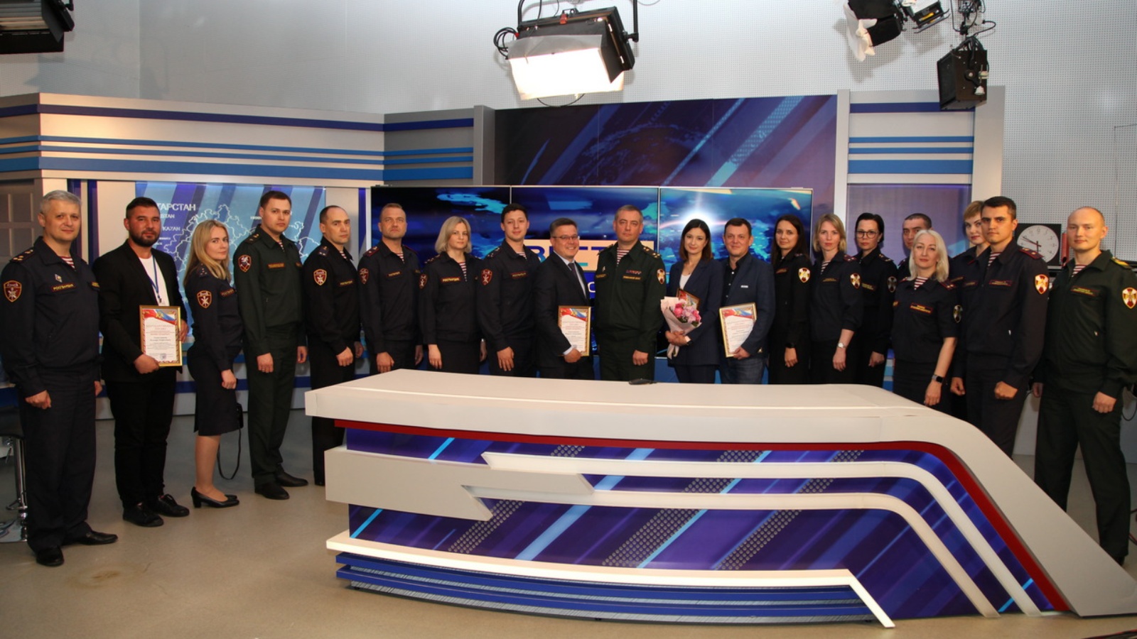 Не менее познавательным для сотрудников пресс-служб стал мастер-класс, организованный специалистами ГТРК «Татарстан». Участников сбора встретил директор телерадиокомпании Фирдус Гималтдинов. После небольшой экскурсии по основным помещениям телекомпании, в одном из ее павильонов, росгвардейцам рассказали об особенностях работы тележурналистов при подготовке оперативных репортажей с мест событий и поделились тонкостями операторского мастерства.