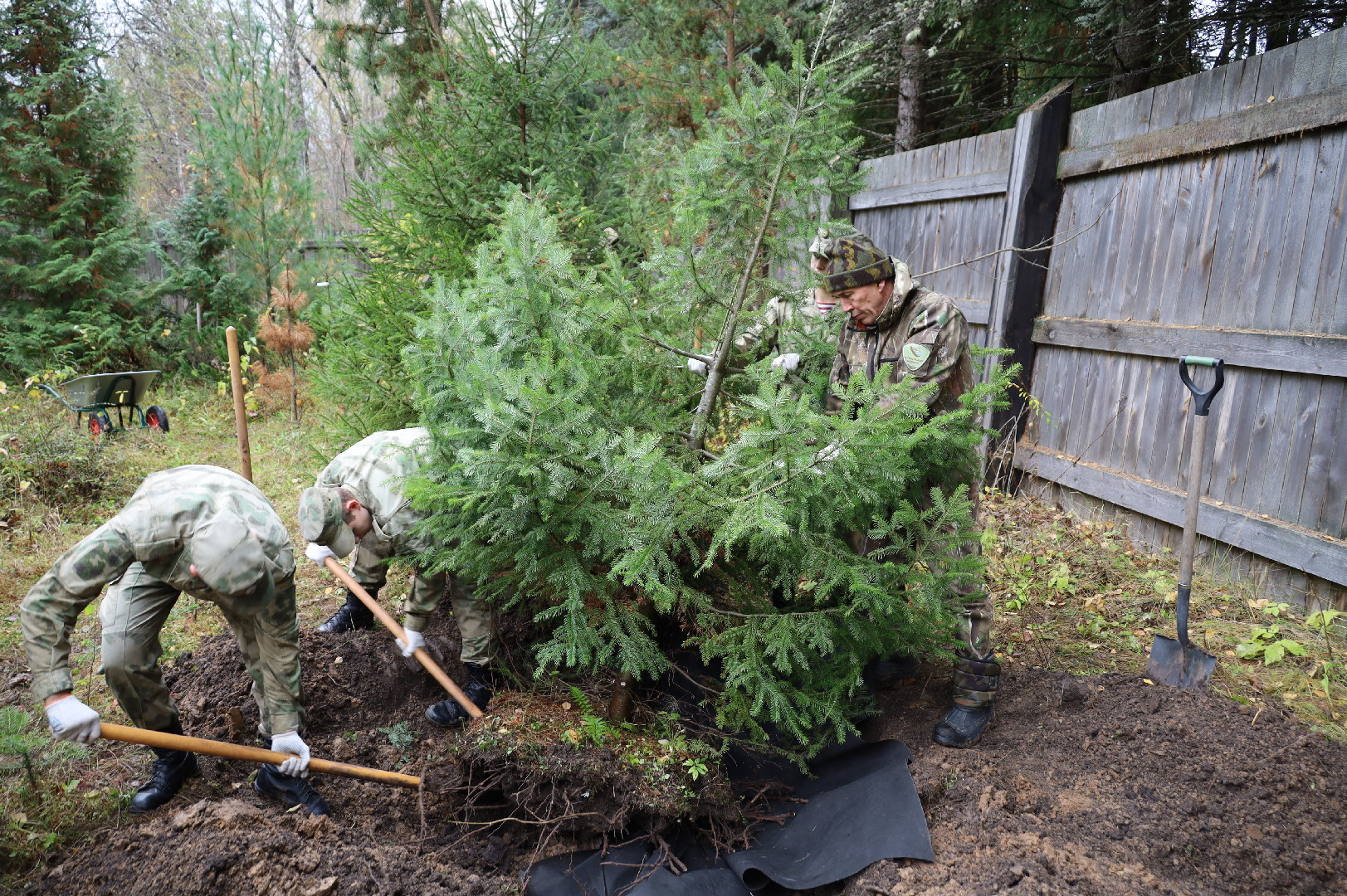 Для памятной акции была выбрана редкая для этих мест сербская ель, выращенная в питомнике заведения. Росгвардейцам сначала пришлось ее выкопать и перевезти к новому месту посадки - на «Аллею памятных дат и событий», где под наблюдением специалистов дендрария она была бережно посажена в грунт.