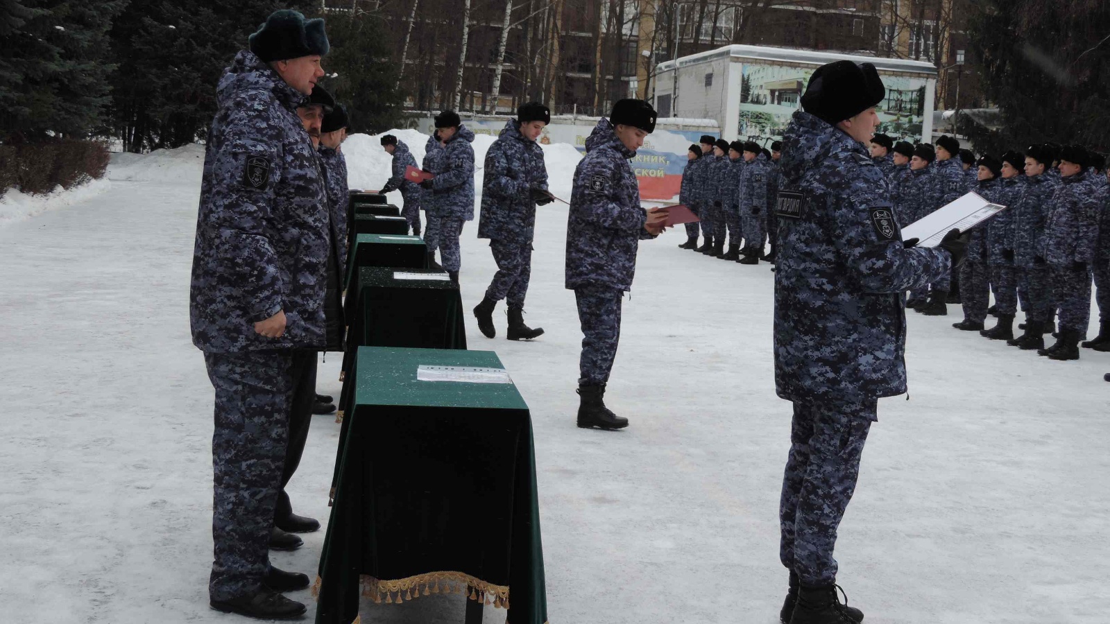 В г. Казани, на строевом плацу факультета профессиональной подготовки, переподготовки и повышения квалификации Казанского юридического института МВД России, состоялась церемония принятия присяги молодыми сотрудниками вневедомственной охраны войск национальной гвардии Российской Федерации по Республике Татарстан.