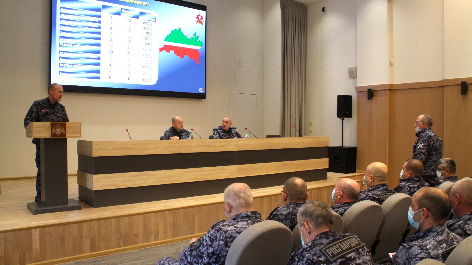 В ходе совещания было отмечено, что за отчётный период коллектив вневедомственной охраны Татарстана с возложенными на него основными задачами по охране объектов различных форм собственности от преступных посягательств справился успешно, а также внёс определённый вклад в обеспечение общественного порядка в республике. На сегодняшний день на территории Татарстана под защитой вневедомственной охраны находится около 15 тыс. объектов и более 34 тыс. мест проживания и хранения имущества граждан. В течение прошедшего года осуществлено почти 5700 выездов по заявкам дежурных частей территориальных органов внутренних дел, отработано свыше 5 тысяч сигналов «тревога», поступивших с охраняемых объектов. Выявлено 296 преступлений, по которым впоследствии возбуждены уголовные дела. Предотвращено около 2800 административных правонарушений. Краж из охраняемых объектов и квартир не допущено.