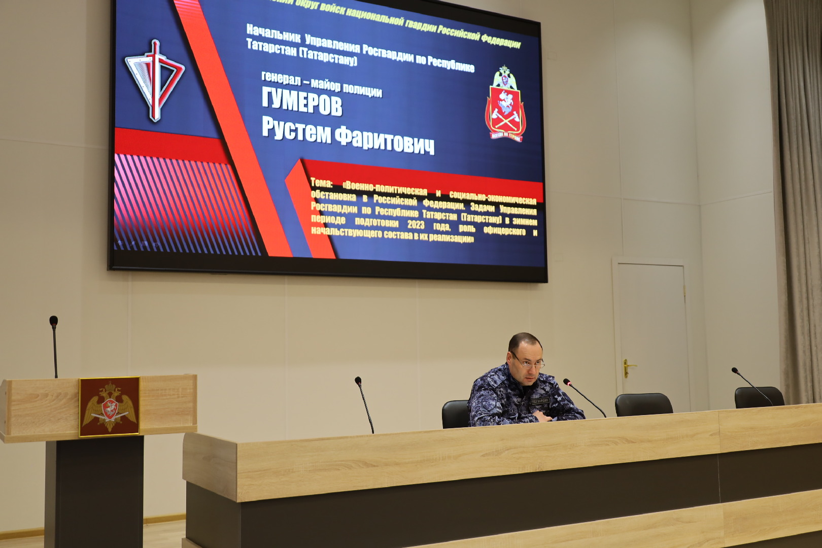 «В предстоящий период необходимо сосредоточить усилия на выполнении поставленных перед нами задач повседневной деятельности - таких как участие в охране общественного порядка и обеспечении общественной безопасности, контроль за соблюдением законодательства в области оборота оружия и частной охранной деятельности, поддержание состояния боевой готовности, укрепление служебной дисциплины и других», - подчеркнул генерал-майор Рустем Гумеров.