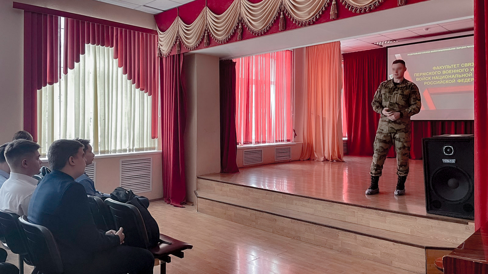 Будущие офицеры войск национальной гвардии Российской Федерации рассказали ученикам об особенностях прохождения военной службы в разных подразделениях Росгвардии. Курсанты подробно разъяснили правила поступления в военные ВУЗы Росгвардии и требования к абитуриентам, а также поведали об учёбе в военном институте и курсантских буднях.