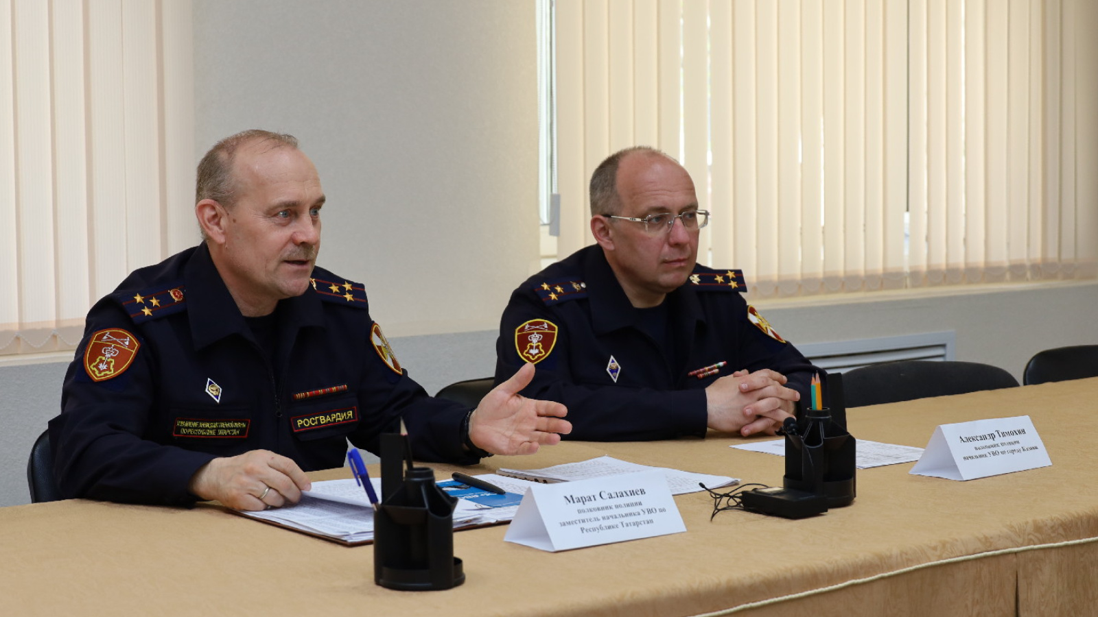 В г. Казани на базе батальона №1 городского управления вневедомственной охраны Росгвардии состоялась пресс-конференция, посвящённая профилактике имущественных преступлений в преддверии дачно-отпускного сезона. В мероприятии приняли участие заместитель начальника ФГКУ «УВО ВНГ России по Республике Татарстан (Татарстан)» полковник полиции Марат Салахиев и руководитель городского управления вневедомственной охраны полковник полиции Александр Тимохин.