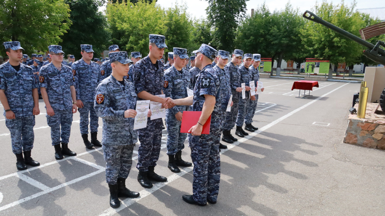 В рамках акции «На память о службе в Росгвардии», наиболее отличившимся военнослужащим врио командира полка вручил почётные грамоты и благодарственные письма родителям.