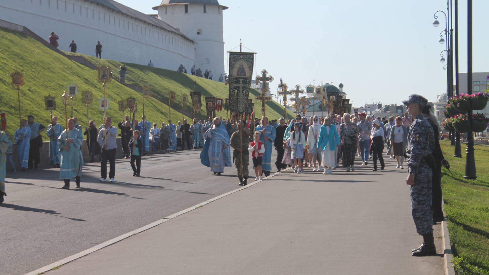 Тысячи верующих из разных регионов России торжественным шествием прошли по улицам центральной части города от Казанского кремля до стен Богородицкого монастыря.