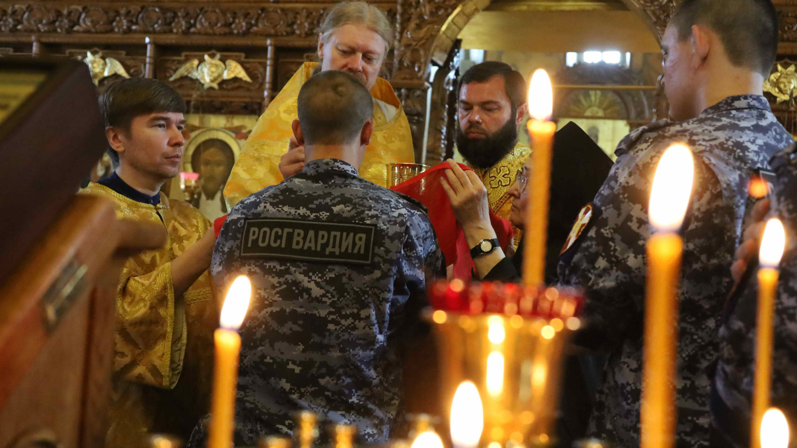Военнослужащие казанского специального моторизованного полка и казанского батальона по охране важных государственных объектов Приволжского округа Росгвардии приняли участие в торжественном богослужении в честь Святого равноапостольного князя Владимира, которое состоялось в казанском Соборе Успения Пресвятой Богородицы.