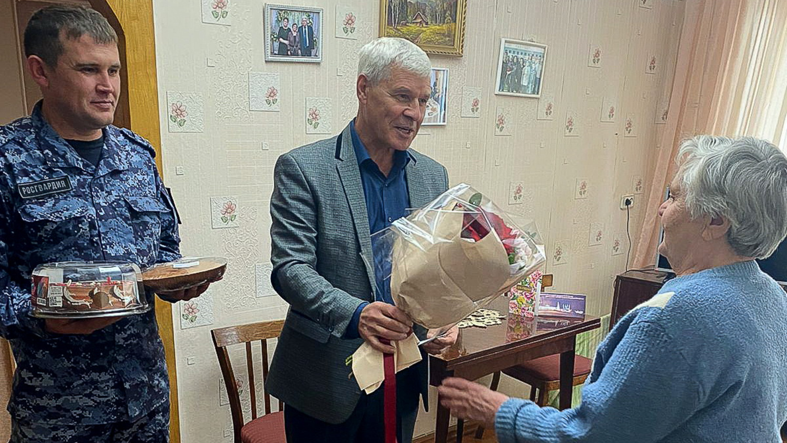 В ходе декады пожилых людей сотрудники подразделений вневедомственной охраны и ветеранский актив посещают бывших коллег по месту их жительства, чтобы пообщаться и поздравить с праздником.