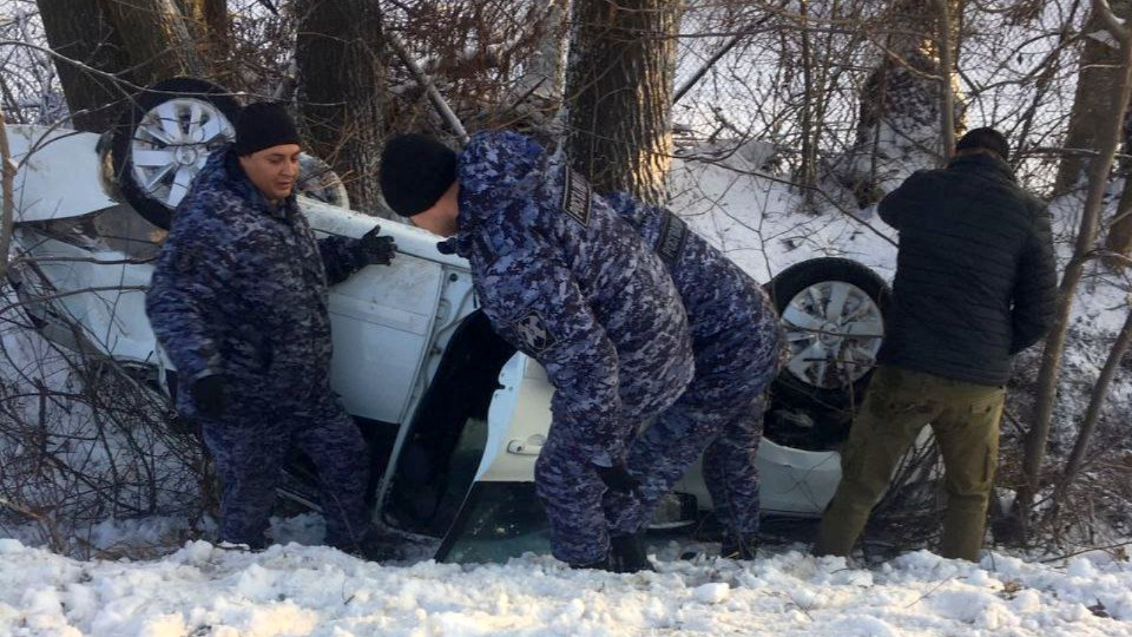 Проезжая мимо одного из садовых обществ, в кювете у противоположной стороны дороги под деревьями росгвардейцы заметили перевернутую легковую машину. Остановившись и схватив огнетушитель, стражи порядка без промедления подбежали к автомобилю. В салоне "Лады Гранты" находился водитель, который пытался выбраться наружу.