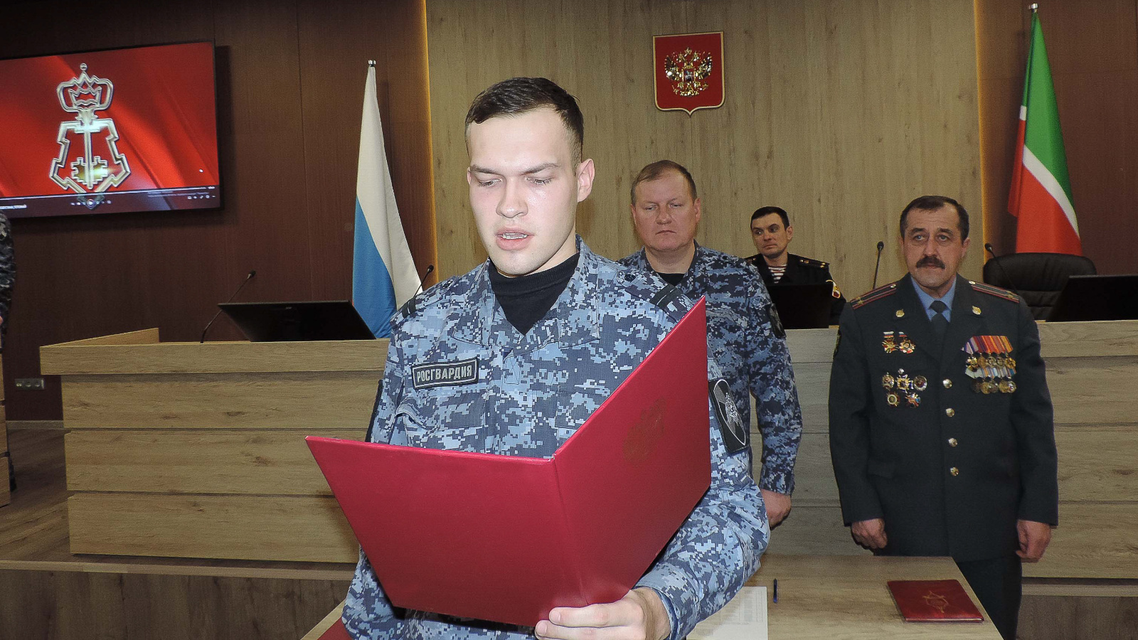 Торжественный ритуал проходил в административном здании Управления Росгвардии по Республике Татарстан. Тринадцать новобранцев, прошедших первоначальное обучение на факультете профессиональной подготовки, переподготовки и повышения квалификации КЮИ МВД России, в торжественной обстановке произнесли слова верности Отечеству, поклялись с честью служить Российской Федерации и ее народу. Присягу у молодых росгвардейцев принимали командиры батальонов.