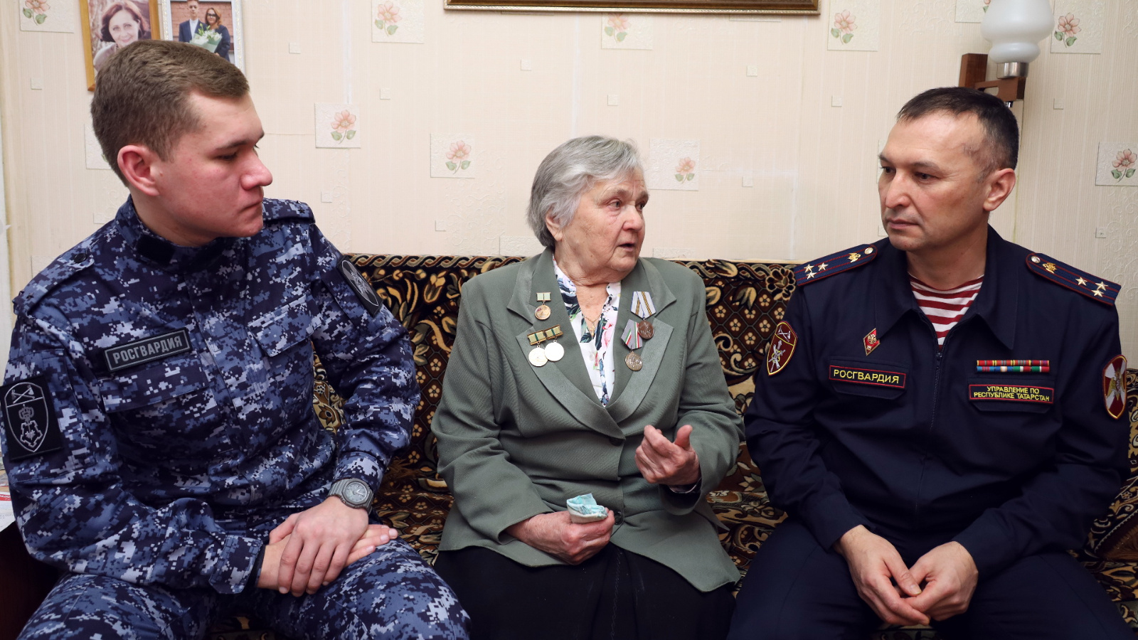 В преддверии памятной даты домой к блокаднице Ленинграда приехали заместитель начальника территориального Управления Росгвардии по военно-политической работе полковник полиции Рафил Набиуллин, заместитель начальника отдела кадров республиканского управления вневедомственной охраны подполковник полиции Ильдус Ахметзянов и представители городского управления вневедомственной охраны. С пожеланиями доброго здоровья, счастья и долголетия гости вручили Валентине Гавриловне букет цветов и продуктовый набор.