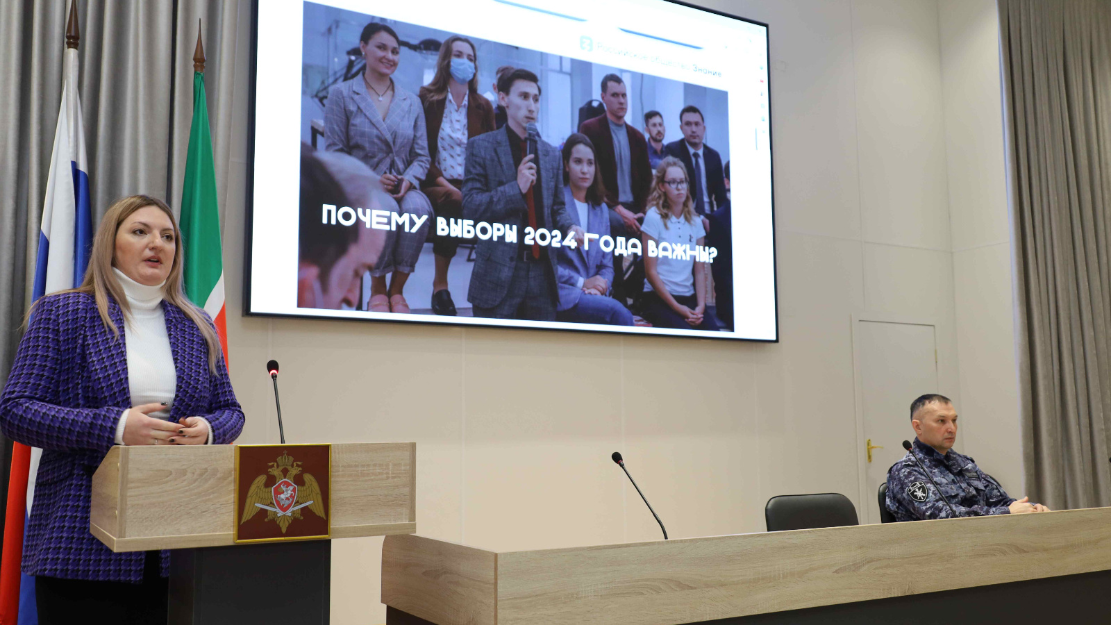 В Управлении Росгвардии по Республике Татарстан для военнослужащих и сотрудников ведомства провели встречу с представителем просветительской организации Российского общества «Знание» Ниной Шиминой на тему «Выборы в России».