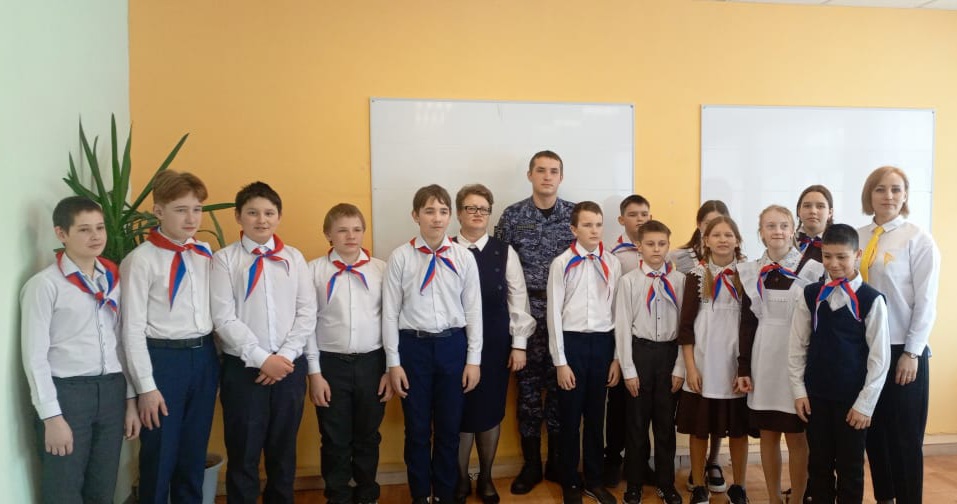 Проведя небольшой экскурс по истории становления грядущего праздника, гость рассказал ребятам о своих служебных буднях и деятельности коллег. Пояснил, какие виды войск существуют в российской армии и какую роль играют войска национальной гвардии Российской Федерации в обеспечении безопасности страны.
