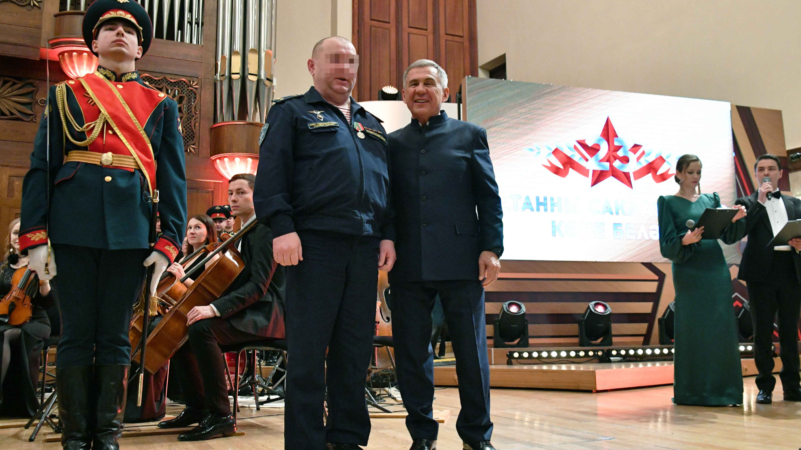 Раис Республики Татарстан на торжественном мероприятии, посвящённом Дню защитника Отечества, наградил военнослужащего Росгвардии медалью ордена «За заслуги перед Республикой Татарстан».