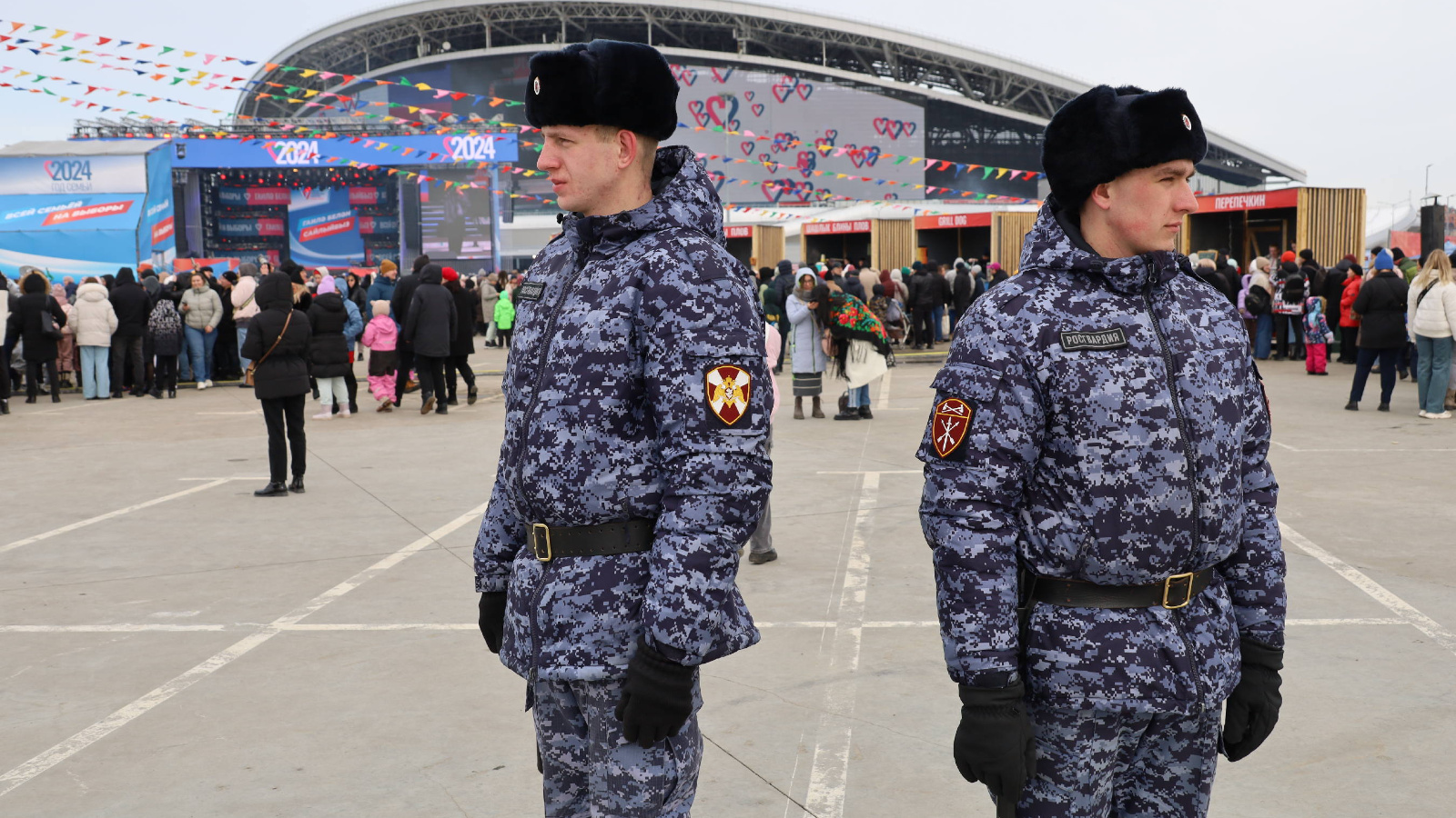 В завершающий день выборов военнослужащие казанского специального моторизованного полка Росгвардии и сотрудники казанского ОМОН Управления Росгвардии по Республике Татарстан приняли участие в охране общественного порядка и обеспечении безопасности во время проведения семейного фестиваля с участием звёзд российской эстрады и празднования Широкой Масленицы на площадке у стадиона «Ак Барс Арена».