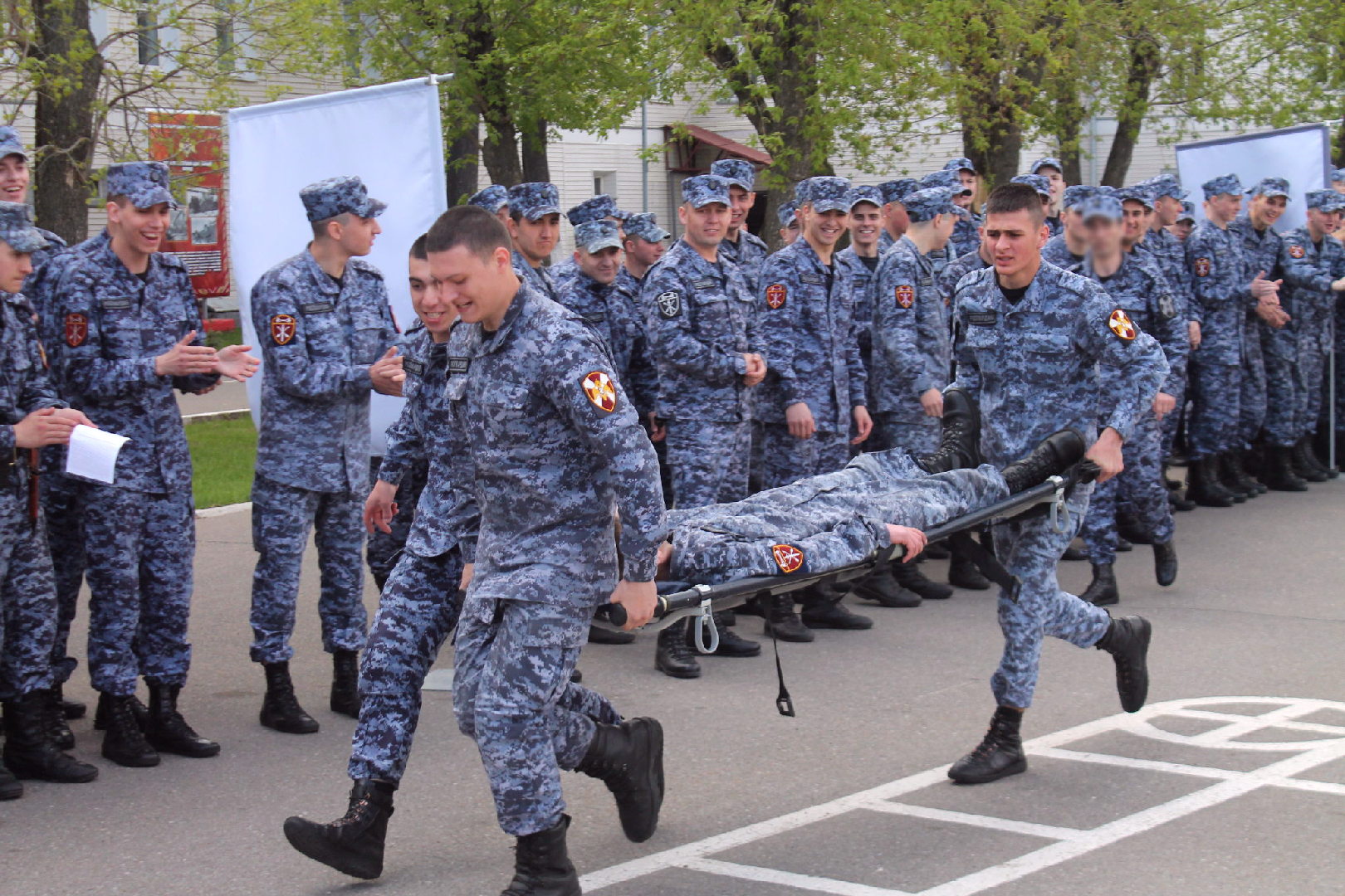 Военнослужащие соревновались в перетягивании каната, состязались в военизированной эстафете, включавшей в себя разборку-сборку автомата, эвакуацию раненного, отжимание и другие элементы.