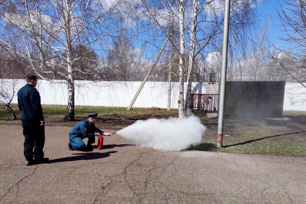 По завершении тренировки представителем противопожарной службы МЧС было проведено занятие по порядку применения, способам тушения и требованиям безопасности при работе с огнетушителями. Огнеборец рассказал о назначении пожарных кранов и работе с пожарными рукавами. Особое внимание было обращено на защиту органов дыхания при сильном задымлении, специальными средствами самоспасения, а при их отсутствии изготовлением повязок из подручных средств.