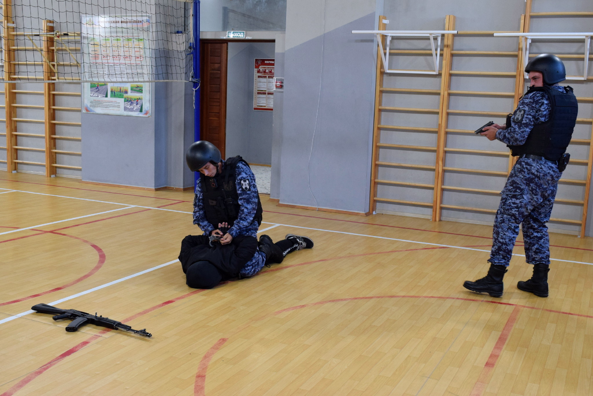 В кратчайшие сроки на место происшествия прибыл экипаж Росгвардии, который профессионально отработал действия по задержанию условного «террориста».
