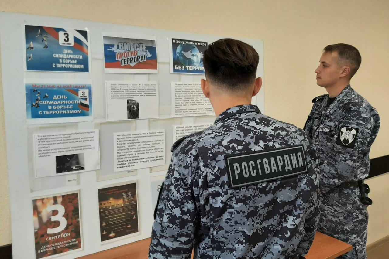 В г. Нижнекамске росгвардейцы присоединились к Всероссийской информационно- просветительской акции «Вместе против террора». В рамках международного Дня солидарности в борьбе с терроризмом сотрудники отдела вневедомственной охраны вспомнили жертв террористических трагедий и провели различные тематические мероприятия.