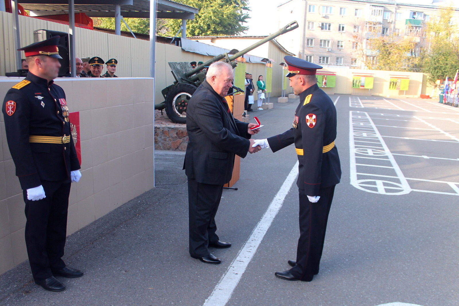 В рамках торжественного мероприятия ряд военнослужащих за достигнутые результаты в охране общественного порядка и обеспечении общественной безопасности были отмечены ведомственными наградами и ценными подарками.