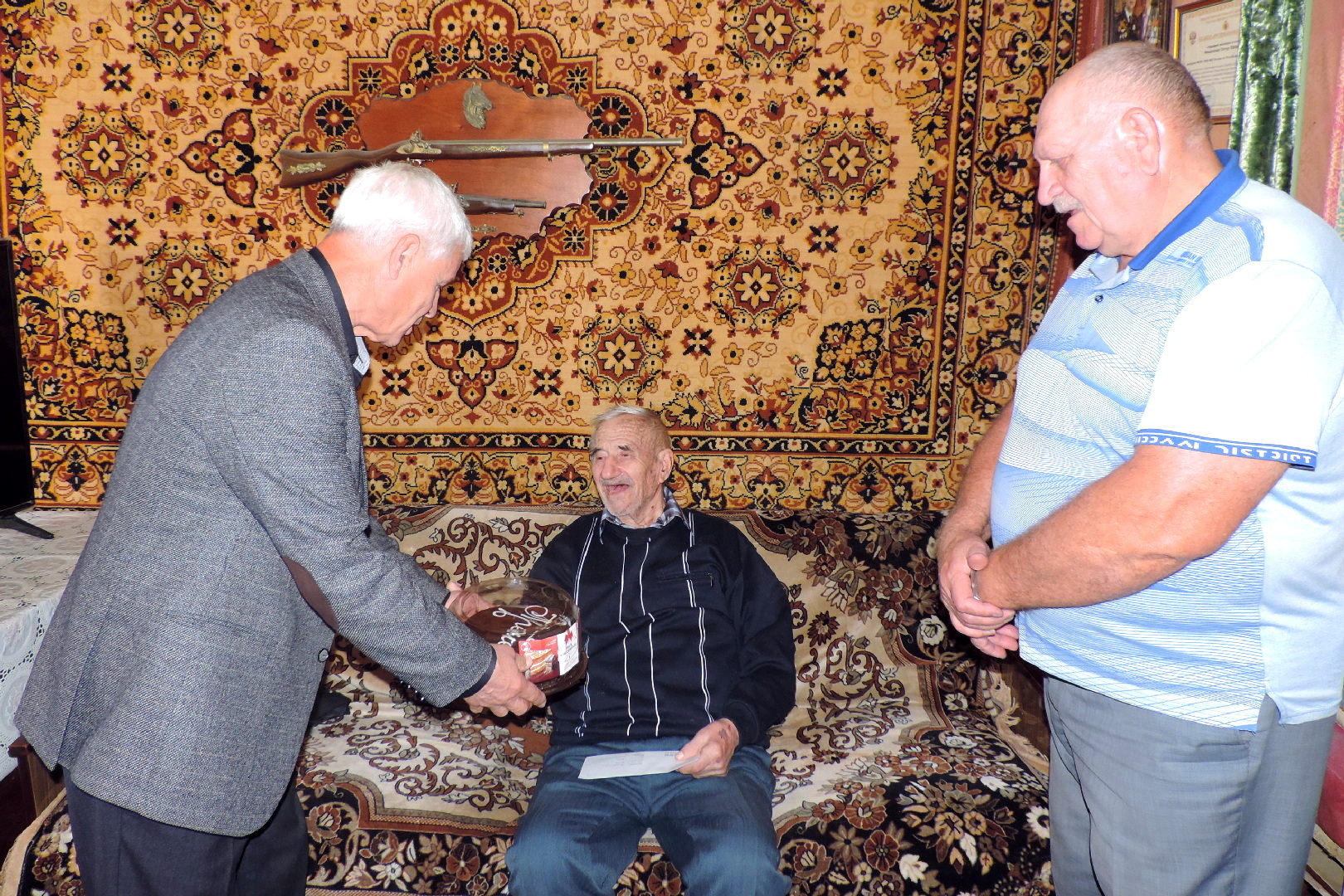 Ветераны с радостью встречали гостей и благодарили за оказанное внимание. Вручая подарки, председатель совета ветеранов республиканского управления вневедомственной охраны полковник милиции в отставке Валерий Харитонов пожелал отставникам здоровья, энергии, заботы близких людей. Также, поинтересовался состоянием их здоровья, наличием бытовых проблем и другими социальными вопросами.