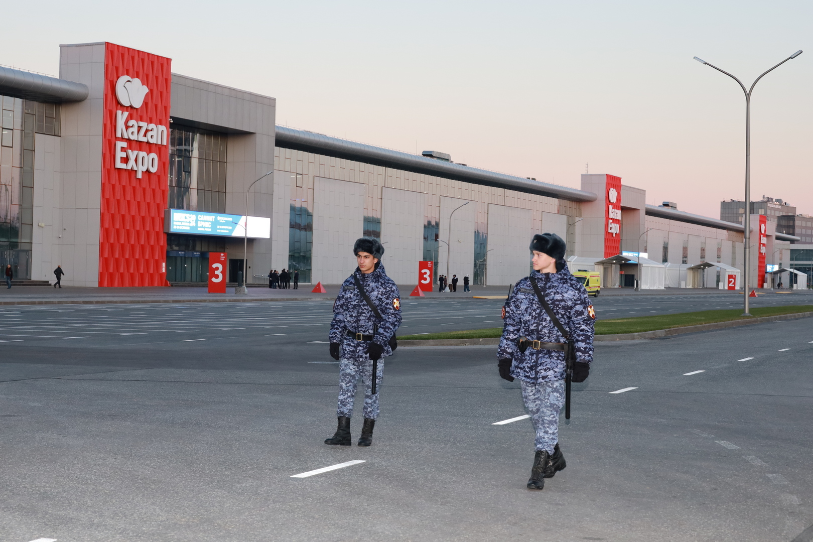 Во время проведения саммита военнослужащие и сотрудники Росгвардии во взаимодействии с представителями других правоохранительных структур обеспечили безопасность Международного выставочного центра «Казань Экспо» - основной площадки проведения международного форума.