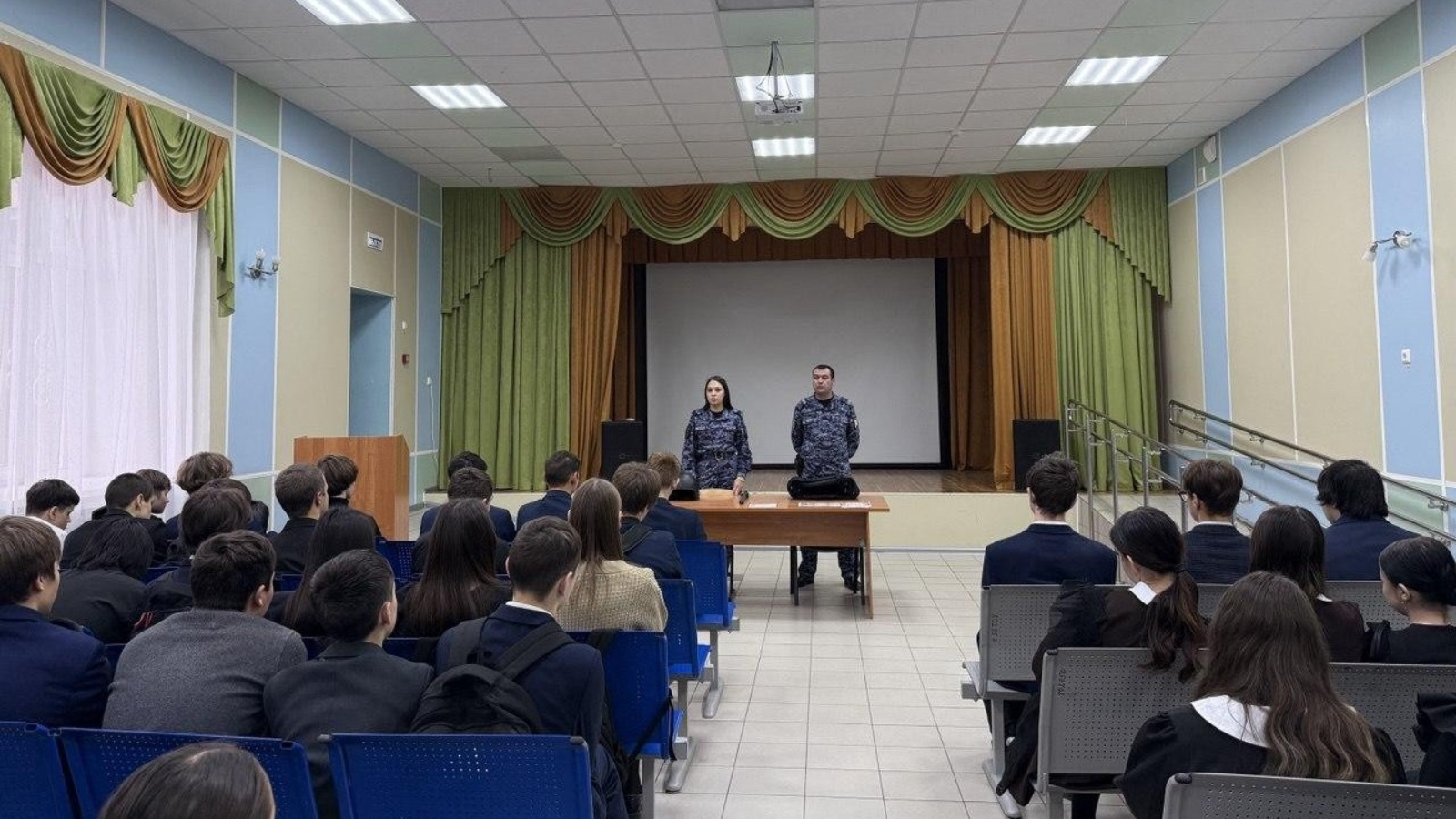 Сотрудники Росгвардии рассказали школьникам о буднях правоохранительной службы, требованиях к кандидатам, правилах приема в военные вузы и важности физической подготовки.