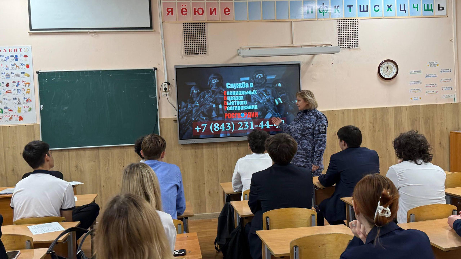 Отдельно была затронута тема поступления в военные вузы Росгвардии. Школьникам подробно рассказали о факультетах, специальностях и правилах приема.