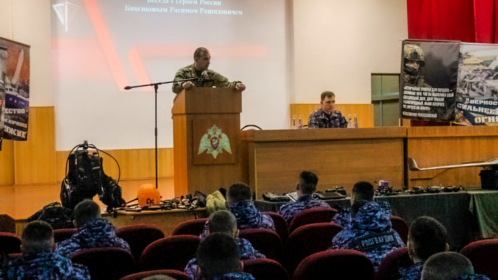 В Казанском полку Росгвардии состоялась встреча с Героем России Расимом Баксиковым, который был удостоен высшей государственной награды, проявив мужество в составе легендарного экипажа танка «Алеша».