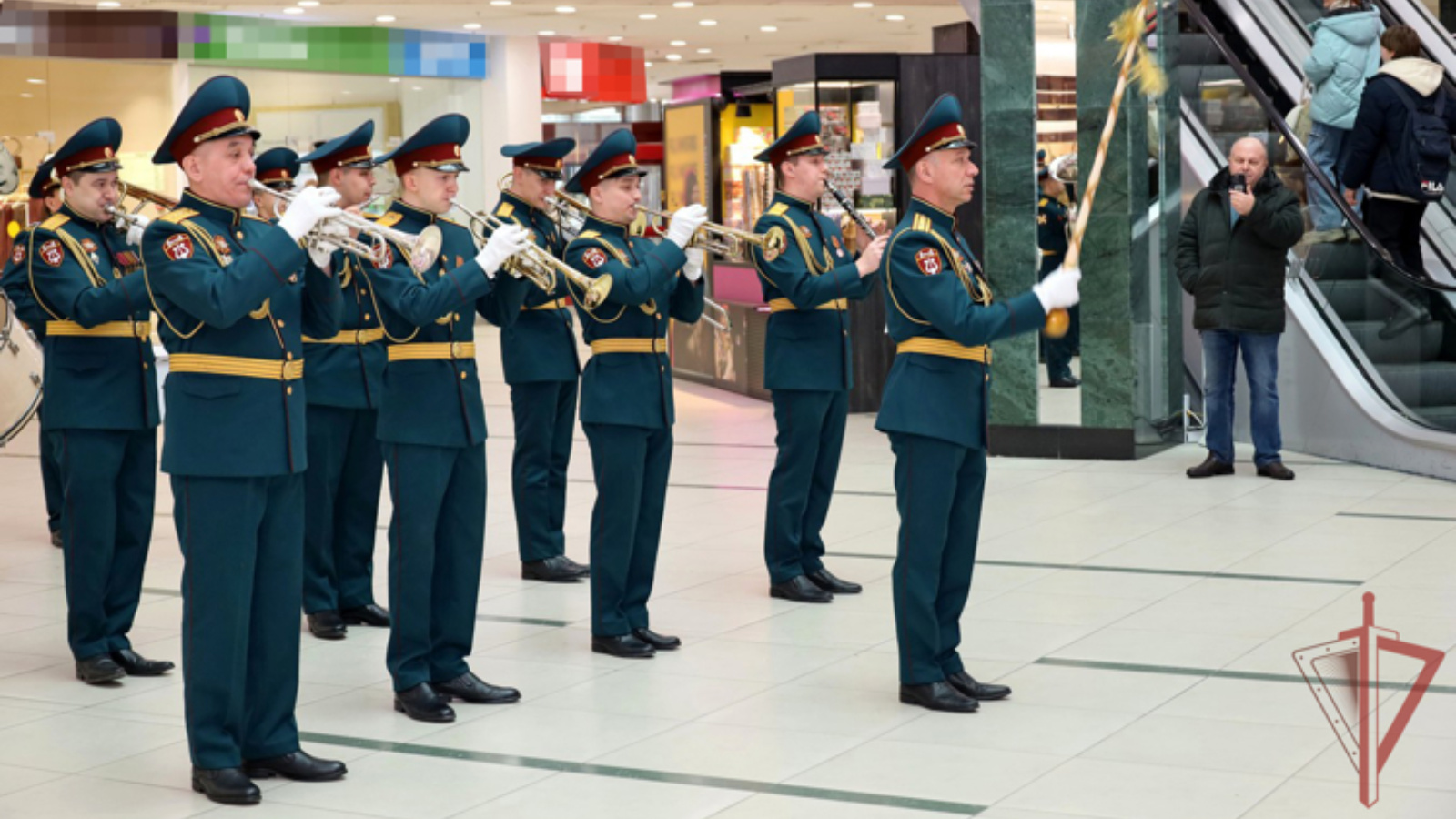 23 февраля в одном из торгово-развлекательных комплексов Казани военный оркестр казанского полка Росгвардии устроил музыкальный флешмоб, посвященный Дню защитника Отечества и 10-летию войск национальной гвардии.