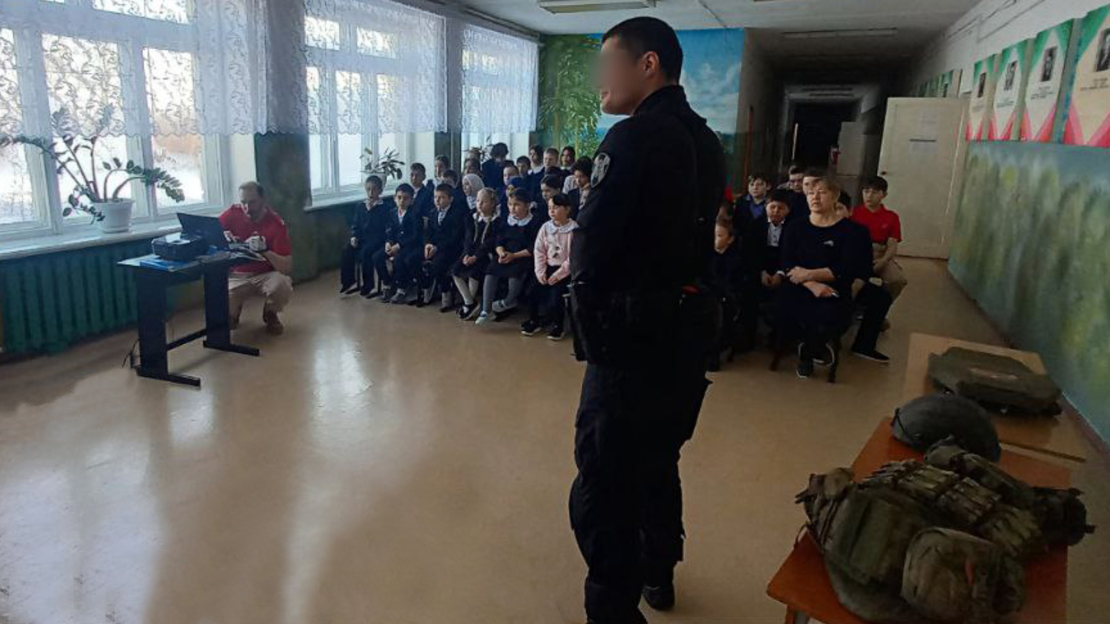 Военно-патриотическое занятие провел сотрудник ОМОН «Тайфун» Управления Росгвардии по Республике Татарстан. Он рассказал школьникам об истории становления ведомства и о боевых буднях своего отряда. Для наглядности росгвардеец принес с собой образцы экипировки и средства бронезащиты, которые все желающие могли примерить.