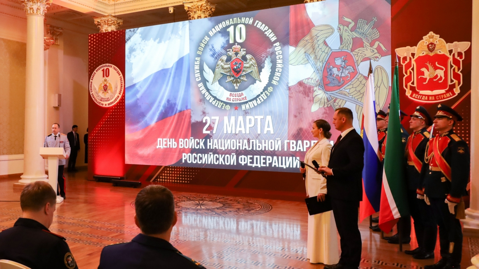 Торжественное мероприятие, посвящённое 10-летию Росгвардии и 215-й годовщине образования войск правопорядка России состоялось в Казанской ратуше.