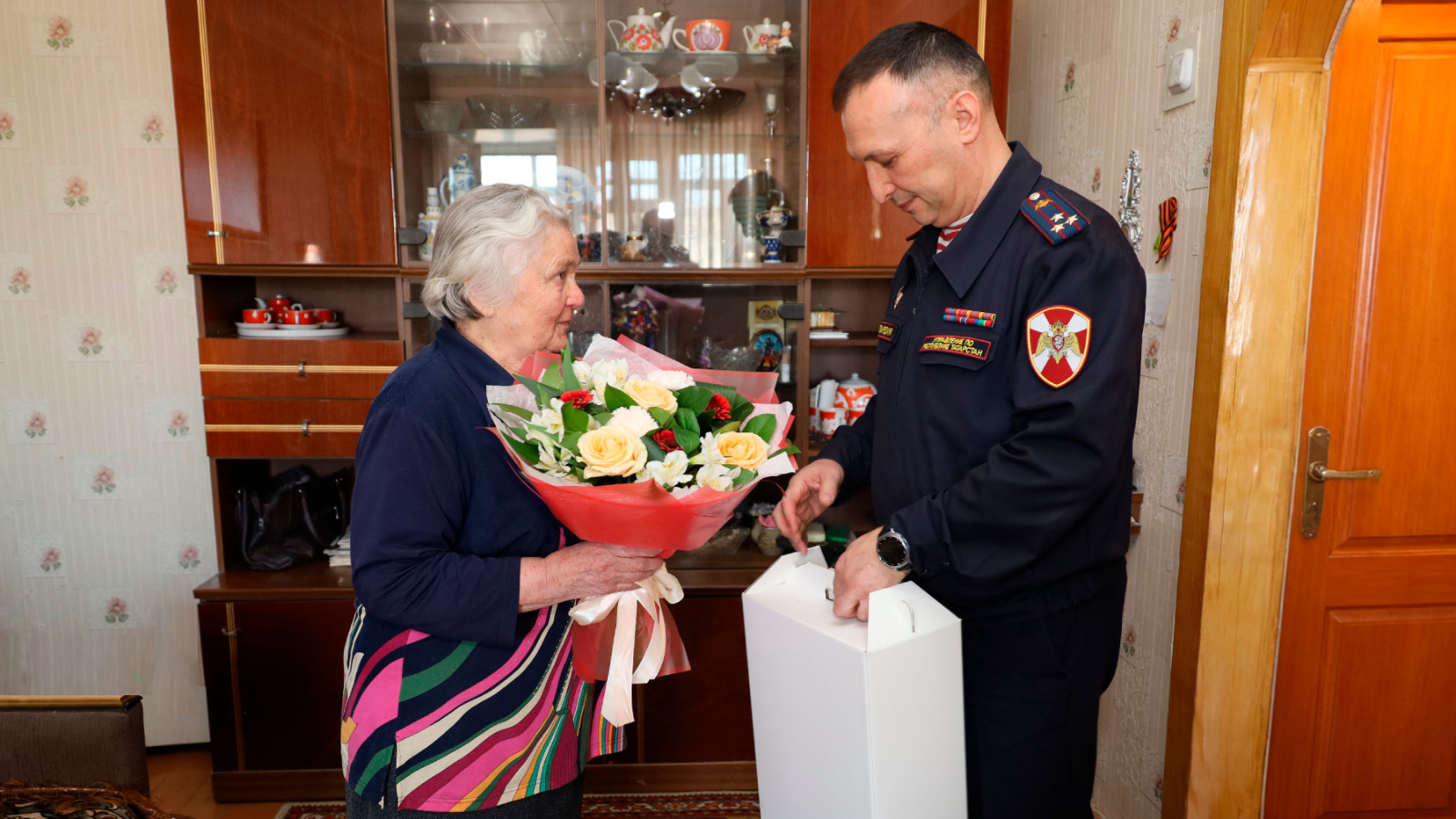 Заместитель руководителя ведомства навестил по местам жительства участника ВОВ полковника милиции в отставке Мануила Давлетшина и блокадницу Ленинграда Валентину Маркину. Он вручил ветеранам цветы и продуктовые наборы. В ходе бесед офицер поинтересовался здоровьем уважаемых пенсионеров, а также взял на заметку высказанные ими социально-бытовые вопросы для их последующего решения. Продолжились визиты чаепитями, во время которых ветераны делились воспоминаниями о своей молодости.